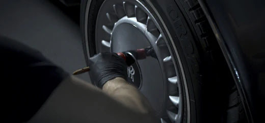 - Spray Swissvax Pneu op de bandenzijkanten of breng aan met een Swissvax Pneu-borstel of Swissvax Puck (zwart).
